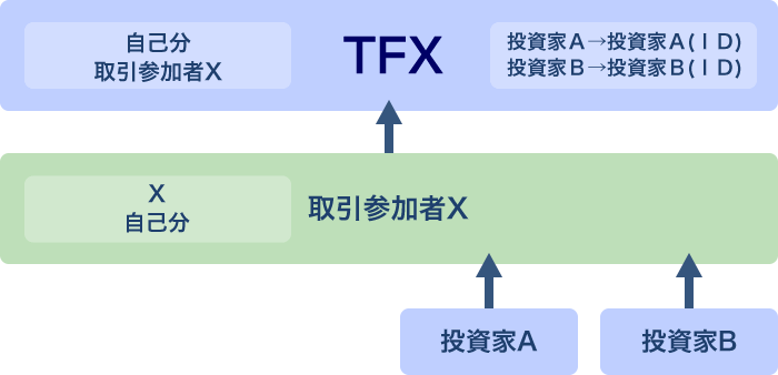 TFXは、証拠金の分別管理制度を導入しています。この制度では、取引参加者はお客様(投資家)の証拠金をTFXに預託し、TFXはその証拠金を取引参加者によって各投資家に付与されたID単位で残高等を管理しています。